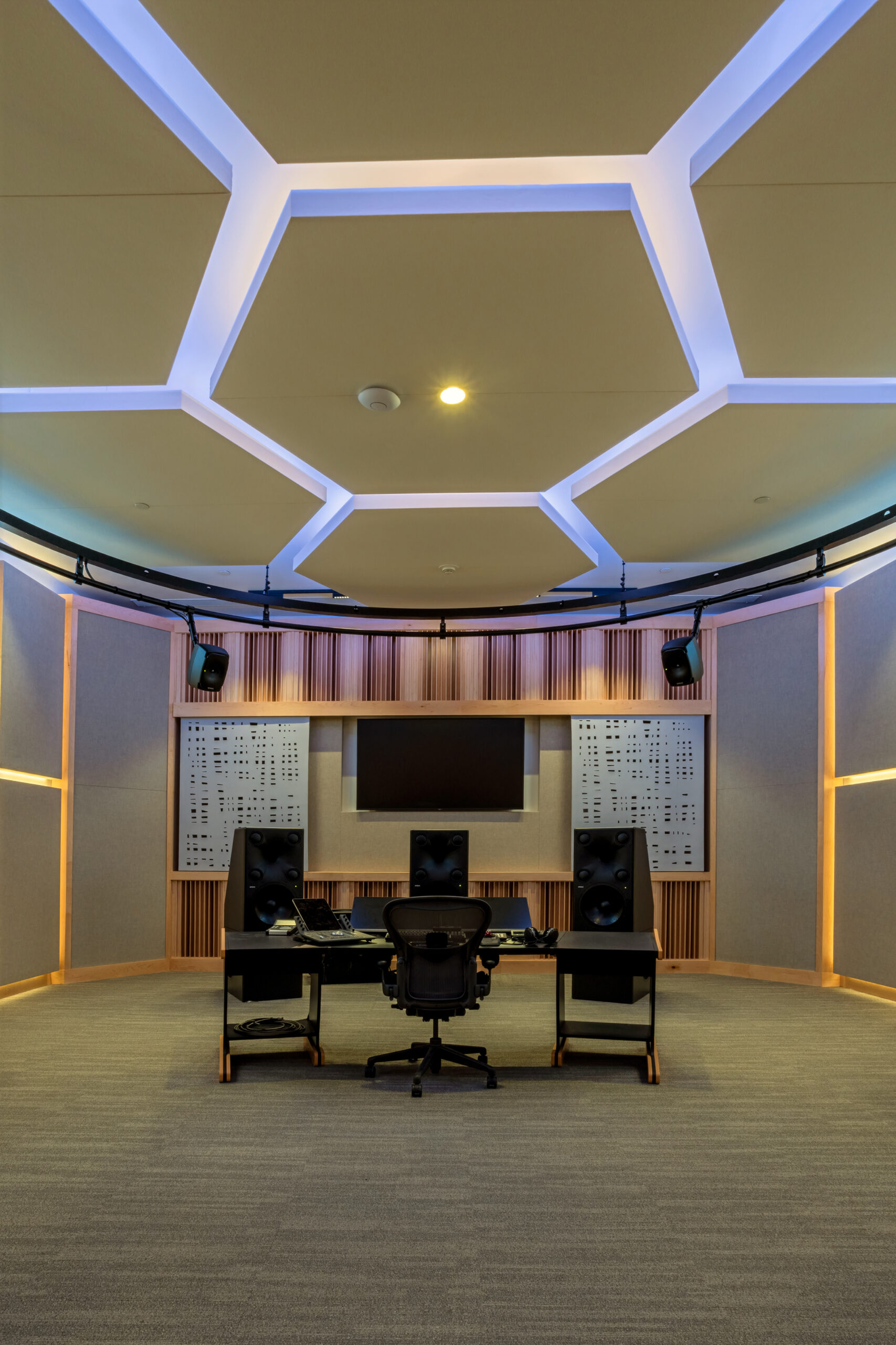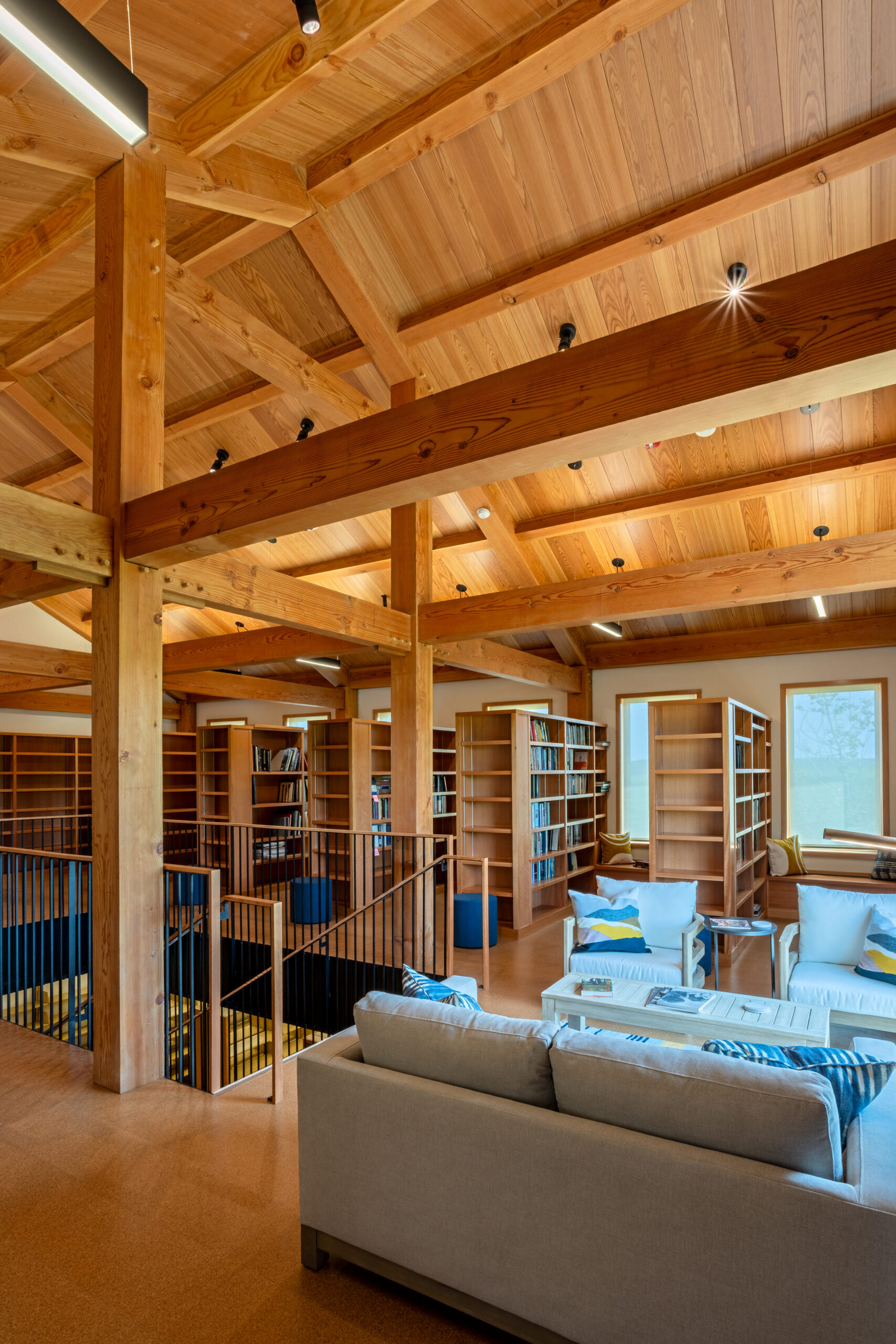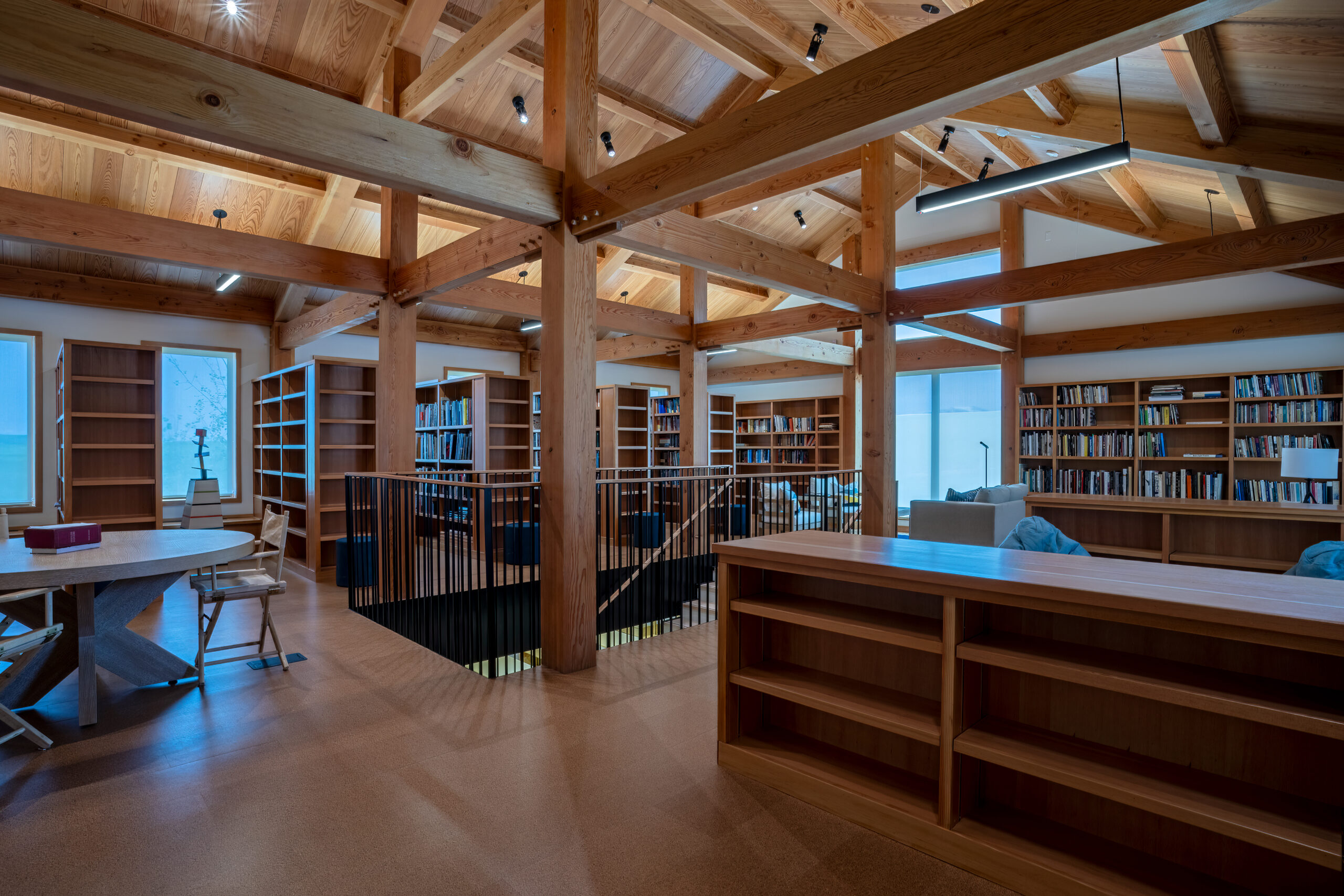 The largest building constructed on site is the Cirrus Building, this 2-story building includes administrative offices, a mastering suite and studio that includes post-production audio and video rooms, a reading room, a library that can accommodate 20,000 books, an art storage space and a mechanical room to serve the campus.