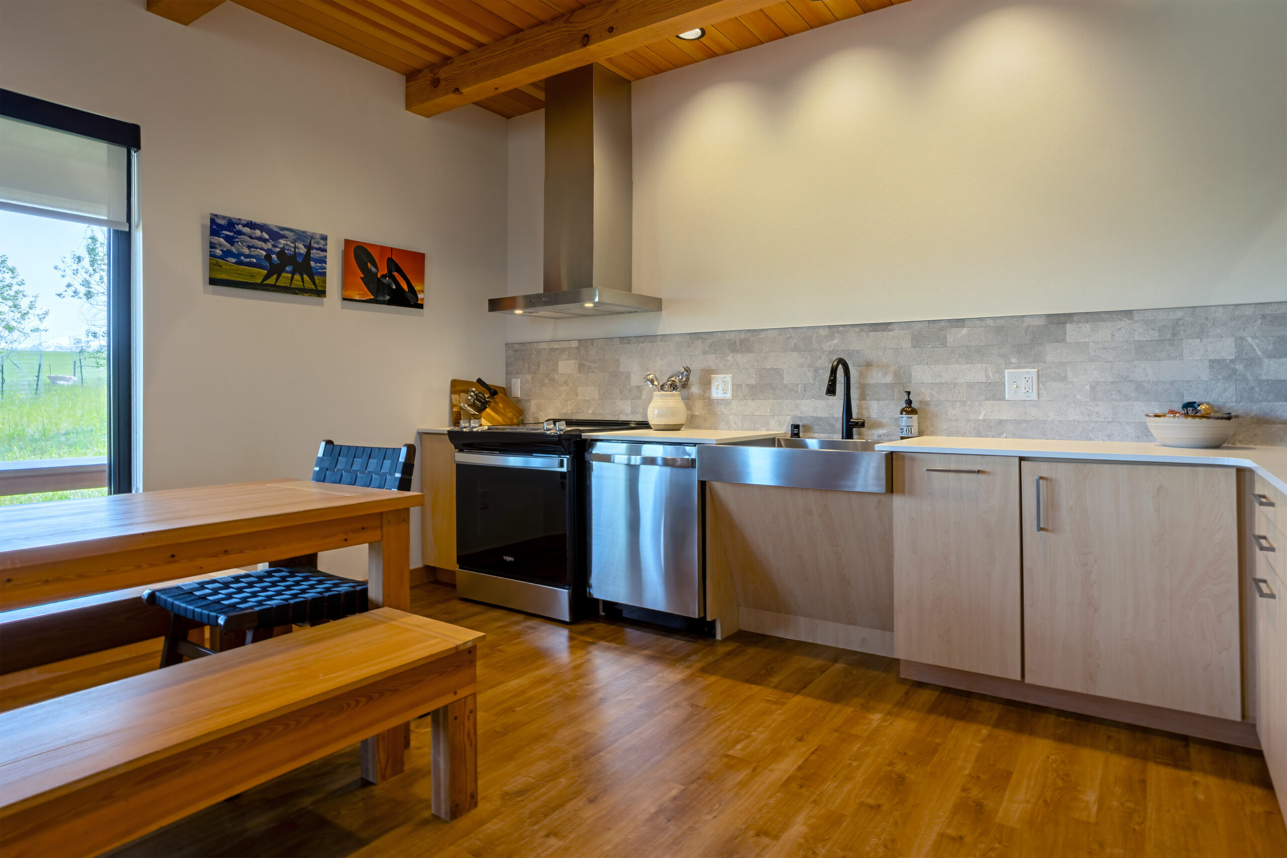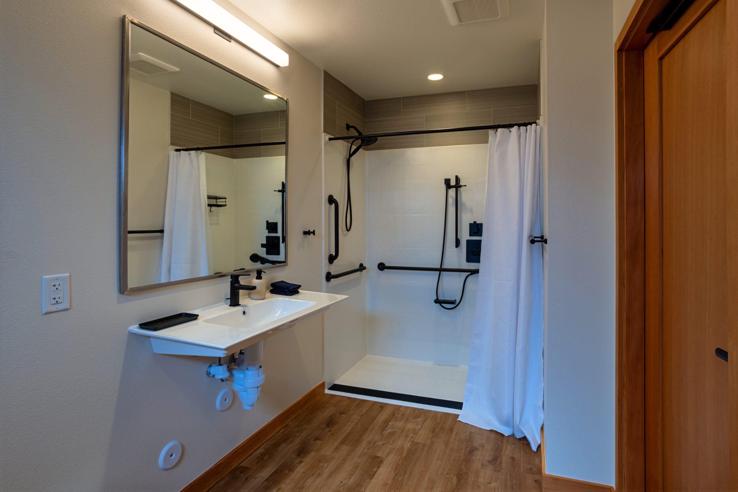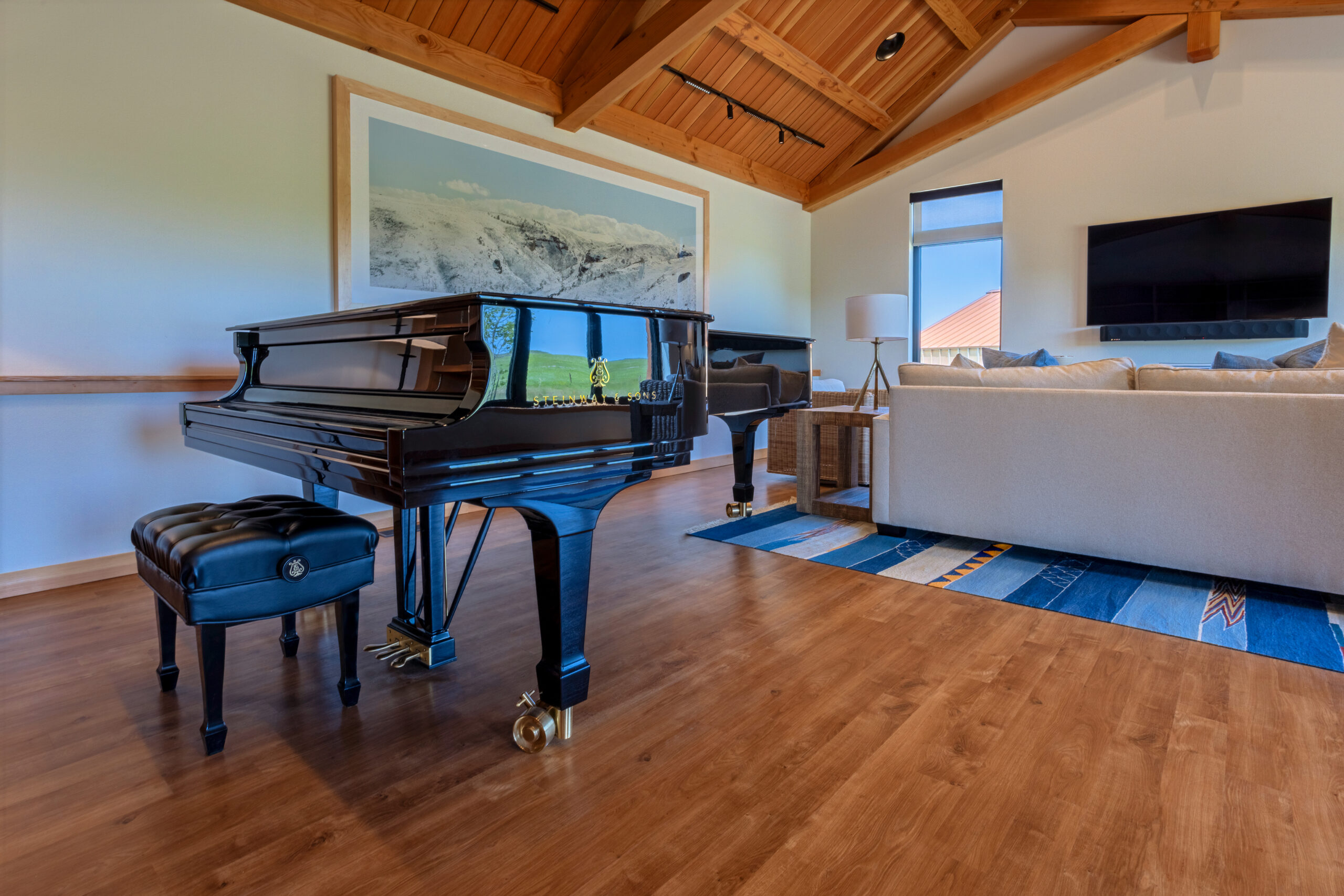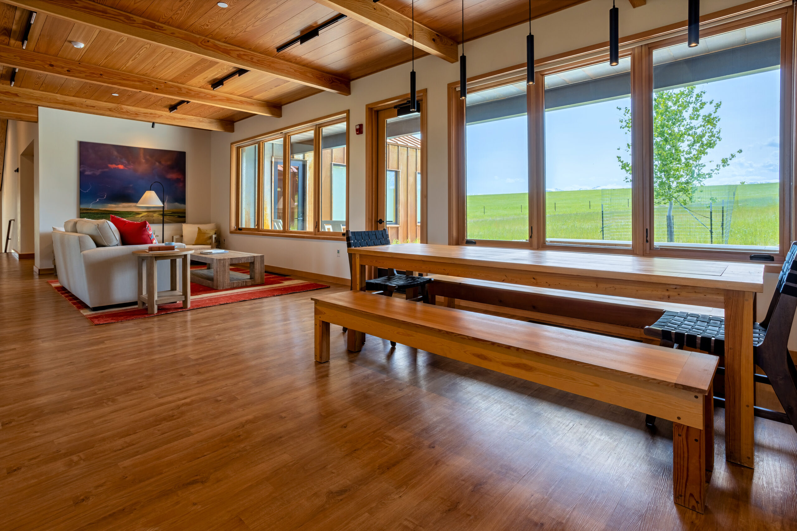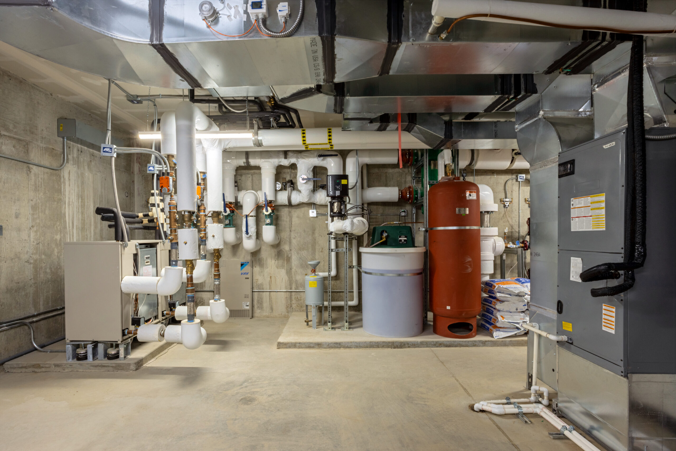 The other buildings constructed were the four Nimbus residences grouped in pairs to accommodate the artists on site, and a smaller separate practice facility. Site work on this project included pathways connecting the buildings on campus, new-geo thermal ground loops, potable and non-potable water systems, a sewer system and the construction of a free-standing solar system which is integrated into the existing campus power grid.